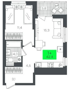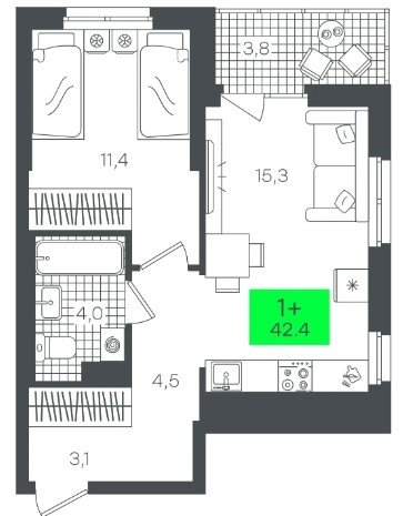 Площадь от 42.4 м2