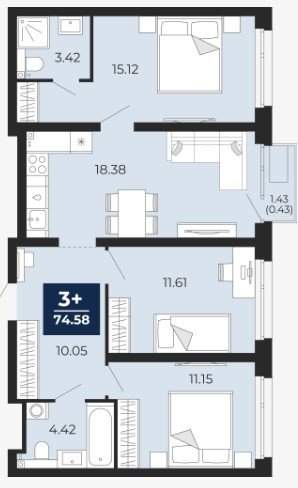Площадь от 75 м2