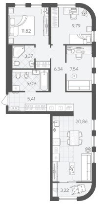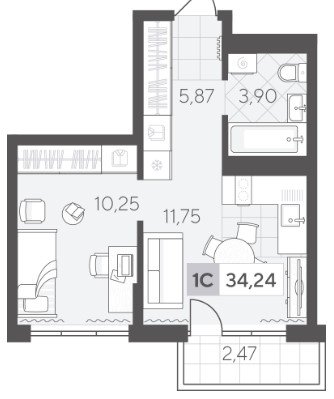 Площадь от 34.2 м2