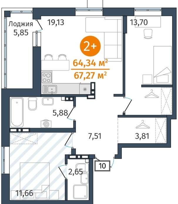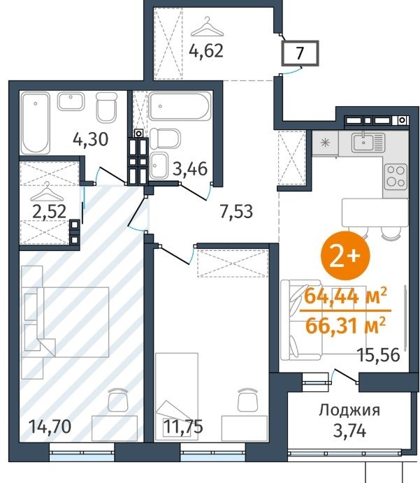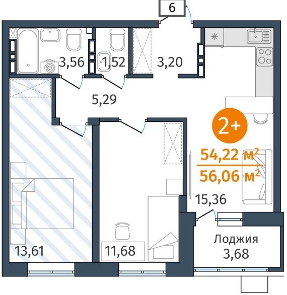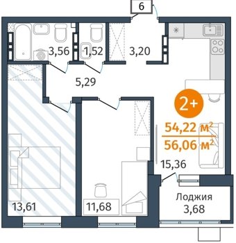 Площадь от 54.2 м2