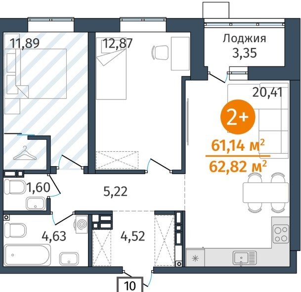 Площадь от 52.2 м2