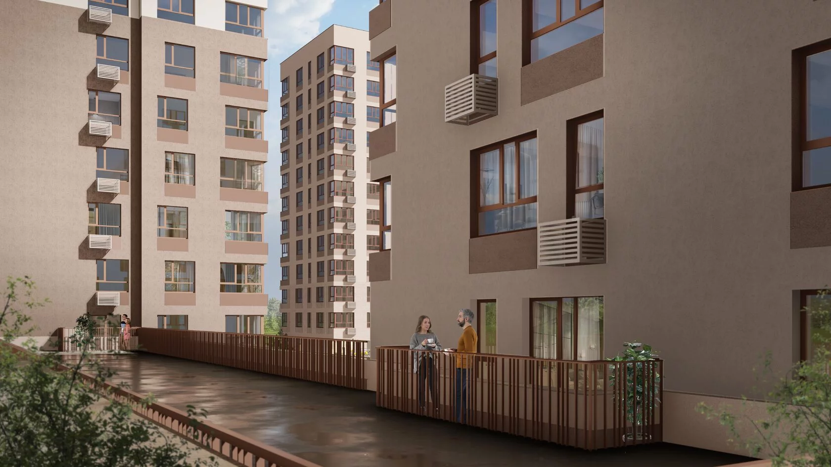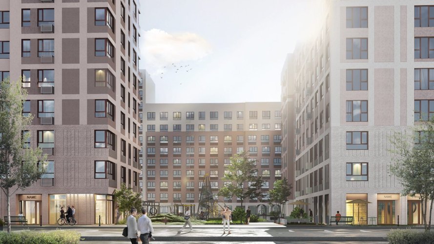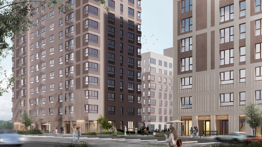 Архитекторы квартала сделали его узнаваемым, органично вписав в окружающую среду. Цвета фасадов, разная высота секций, окна разных размеров и форм задают динамику и делают дом оригинальным дополнением локации. Отличительной особенностью стали цвета: спокойный белый в сочетании с кофейным создают спокойную атмосферу квартала, а нежный зеленый добавляет яркости в архитектурную композицию.
