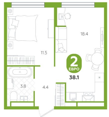 Площадь от 38 м2
