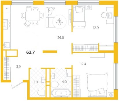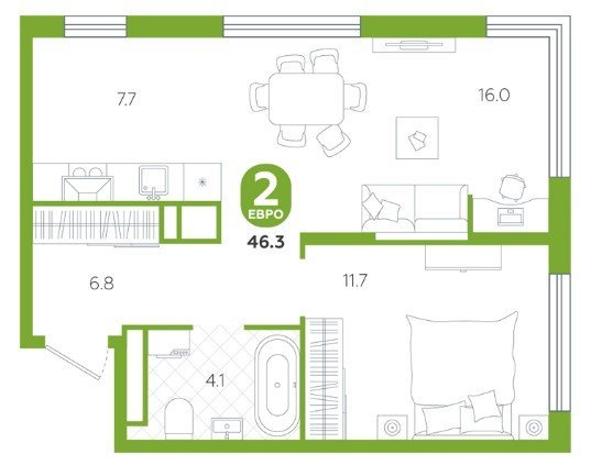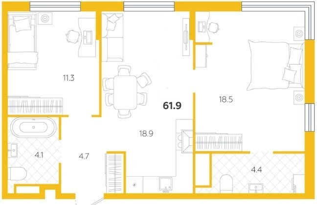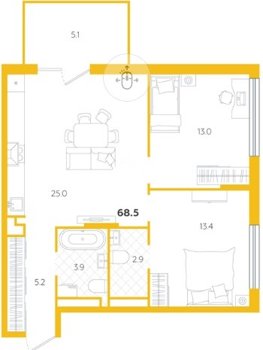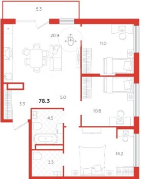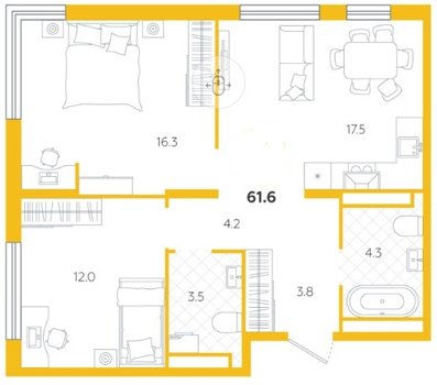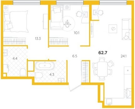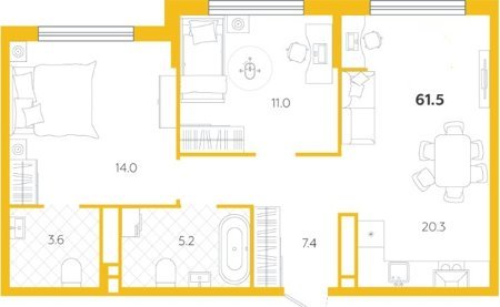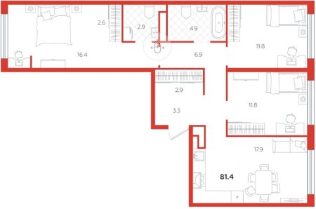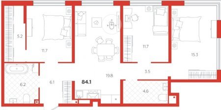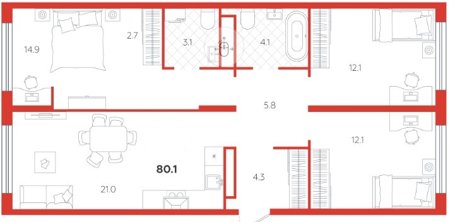 Площадь от 58.1 м2