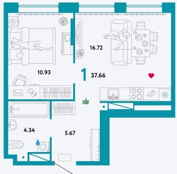Площадь от 37.66 м2