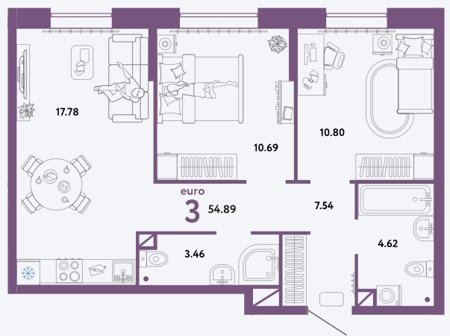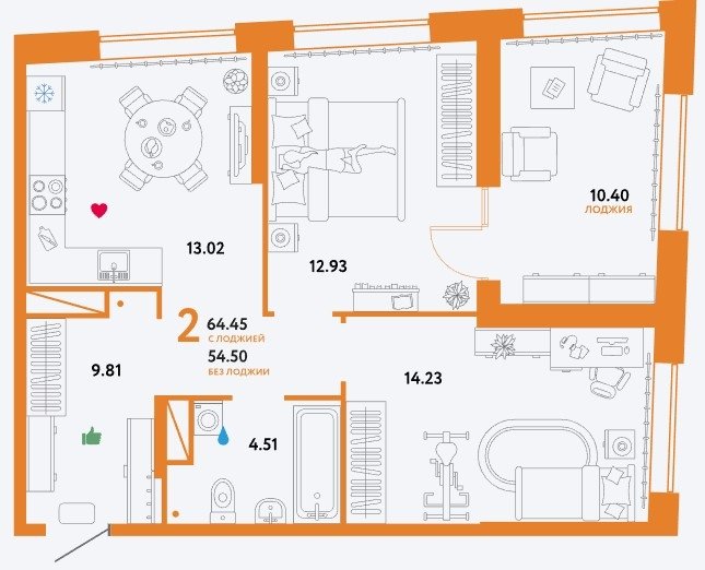 Площадь от 62.12 м2